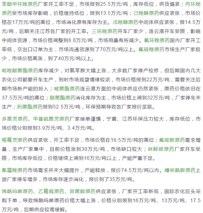 多款原藥貨源緊張價(jià)格提升