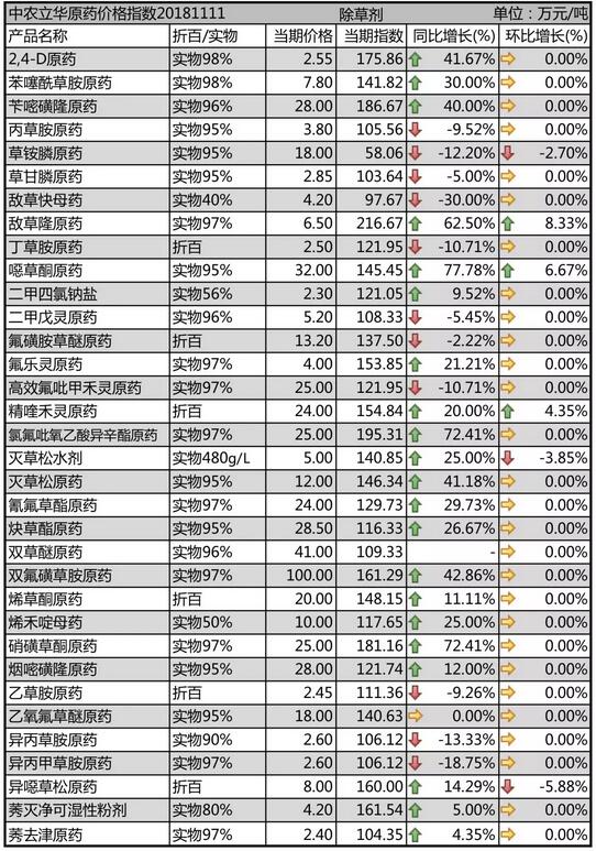11月中旬國(guó)內(nèi)農(nóng)藥原藥除草劑價(jià)格走勢(shì)