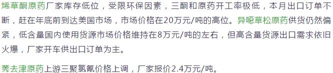 11月上旬國(guó)內(nèi)農(nóng)藥原藥除草劑價(jià)格走勢(shì)