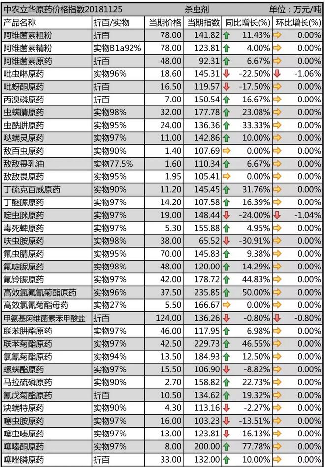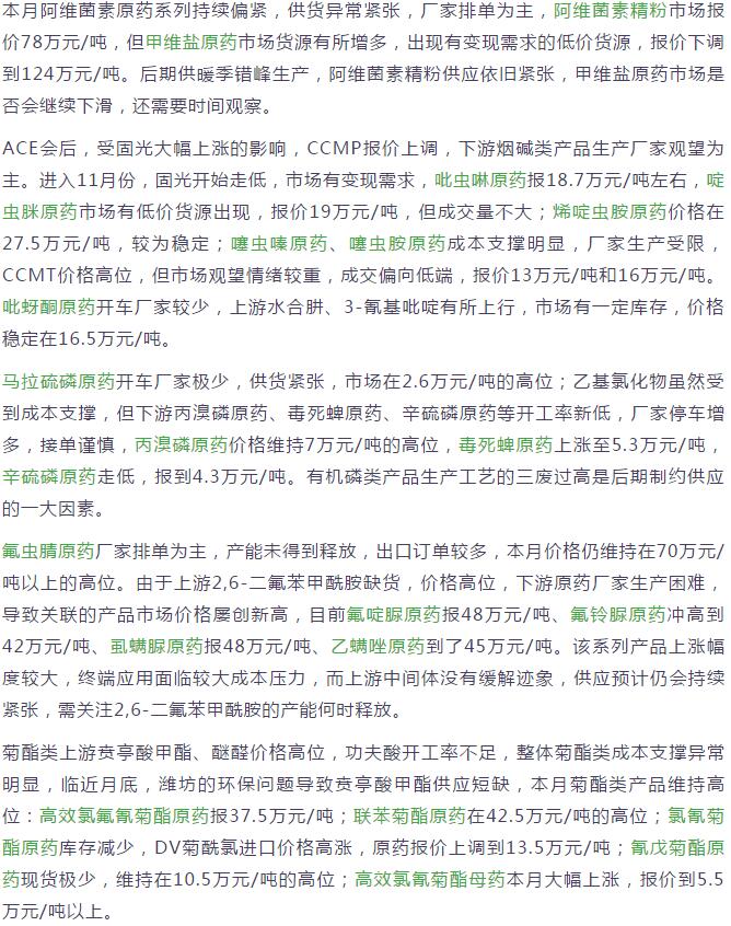 11月下旬國內(nèi)農(nóng)藥原藥殺蟲劑價格走勢