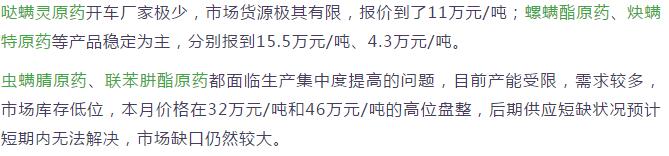多款原藥貨源緊張價格提升