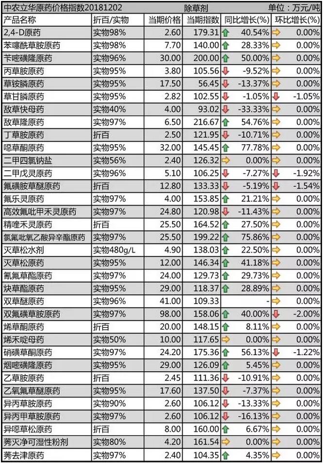 12月初國(guó)內(nèi)農(nóng)藥原藥除草劑價(jià)格走勢(shì)