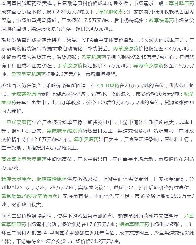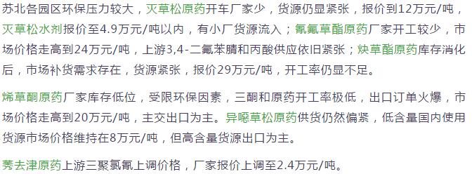 多款原藥貨源緊張價(jià)格提升
