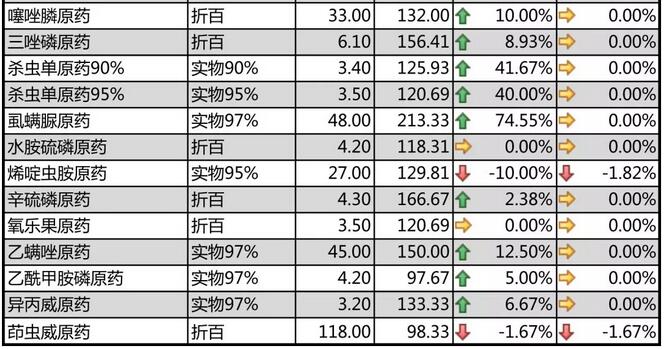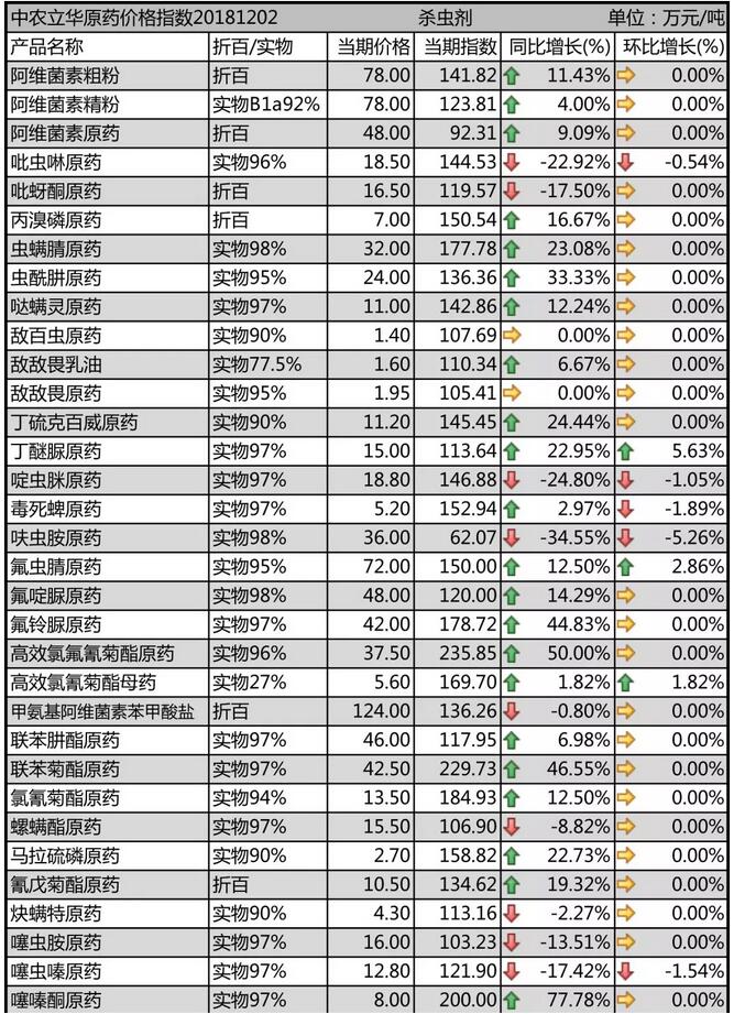 11月底國(guó)內(nèi)農(nóng)藥原藥殺蟲劑價(jià)格走勢(shì)