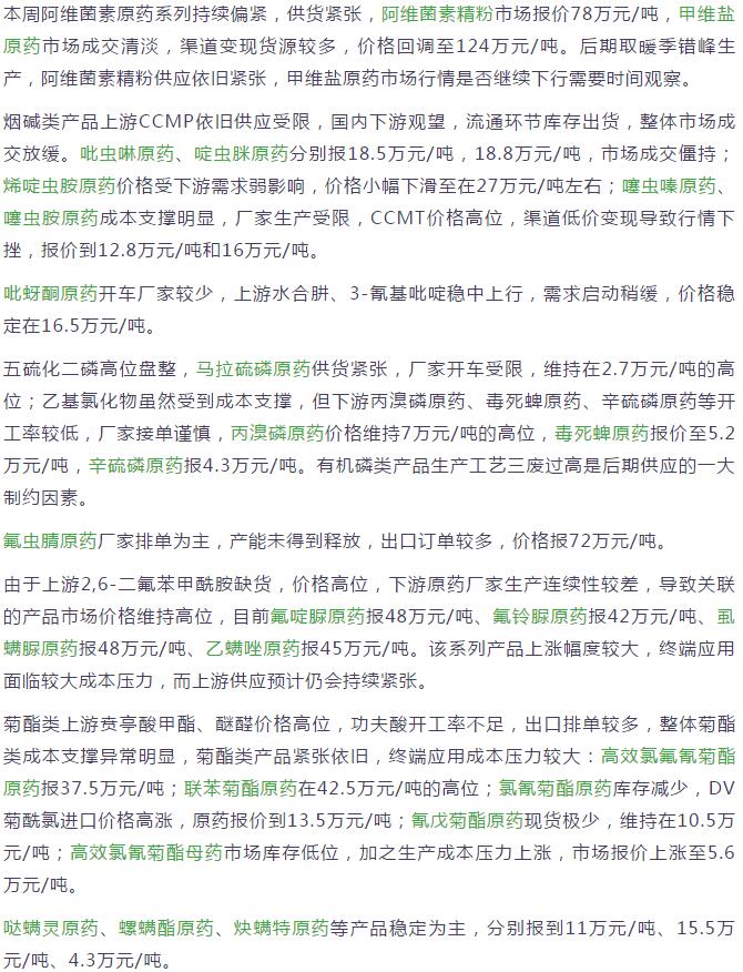 多款原藥貨源緊張價(jià)格提升