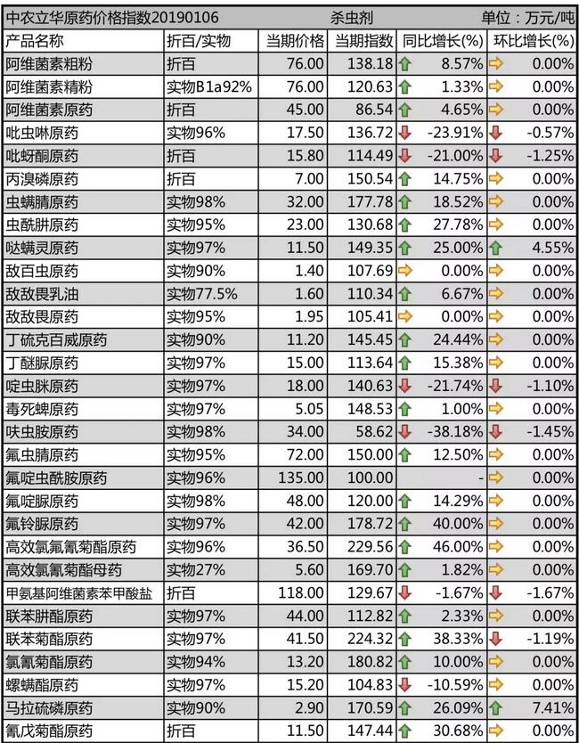 19年1月上旬國(guó)內(nèi)農(nóng)藥原藥殺蟲(chóng)劑價(jià)格走勢(shì)