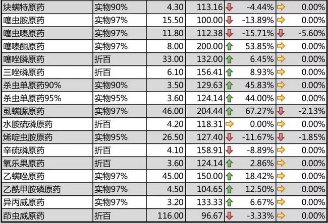 12月末國(guó)內(nèi)農(nóng)藥原藥殺蟲(chóng)劑價(jià)格走勢(shì)