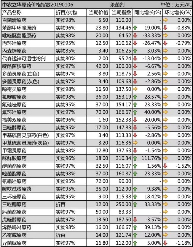 19年1月上旬國內(nèi)農(nóng)藥原藥殺菌劑價格走勢