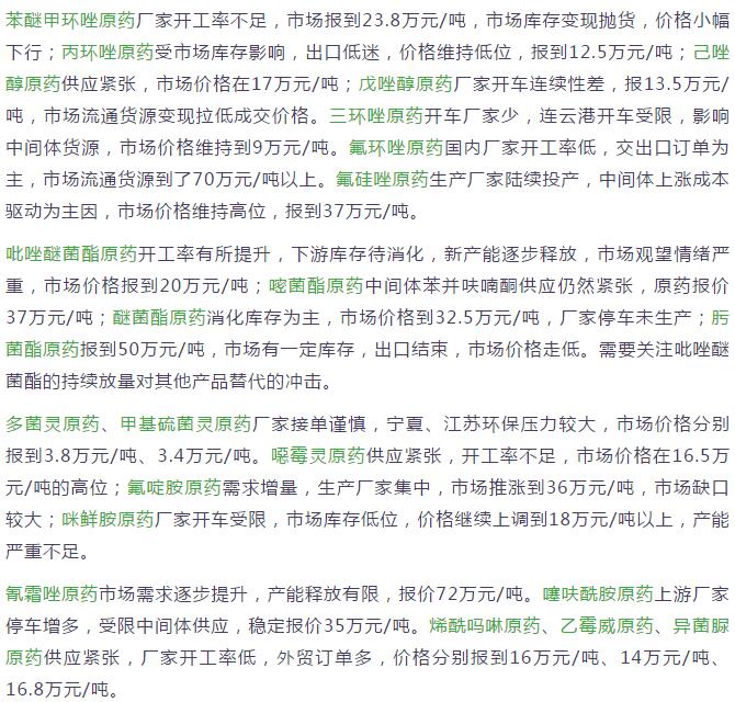 多款原藥貨源緊張價格提升