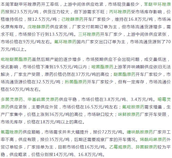 多款原藥貨源緊張價(jià)格提升
