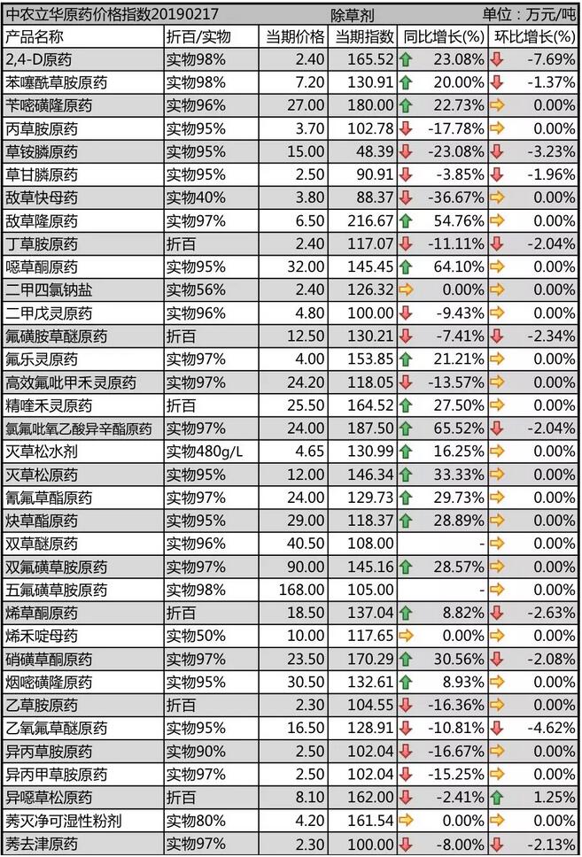 19年2月中旬國(guó)內(nèi)農(nóng)藥原藥除草劑價(jià)格走勢(shì)