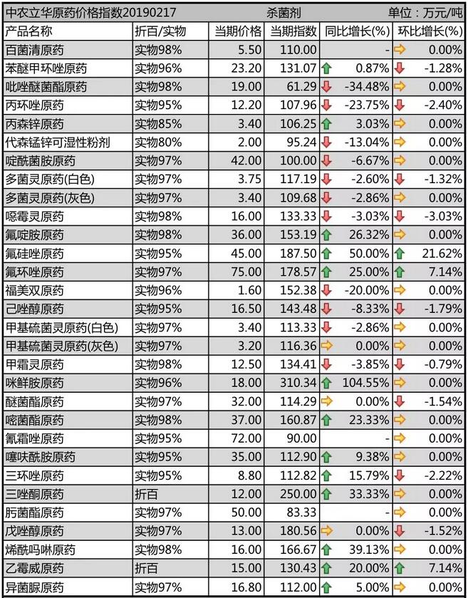 19年2月中旬國內(nèi)農(nóng)藥原藥殺菌劑價(jià)格走勢(shì)