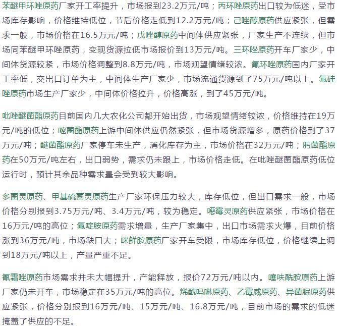 國內(nèi)化肥農(nóng)藥出廠價(jià)格