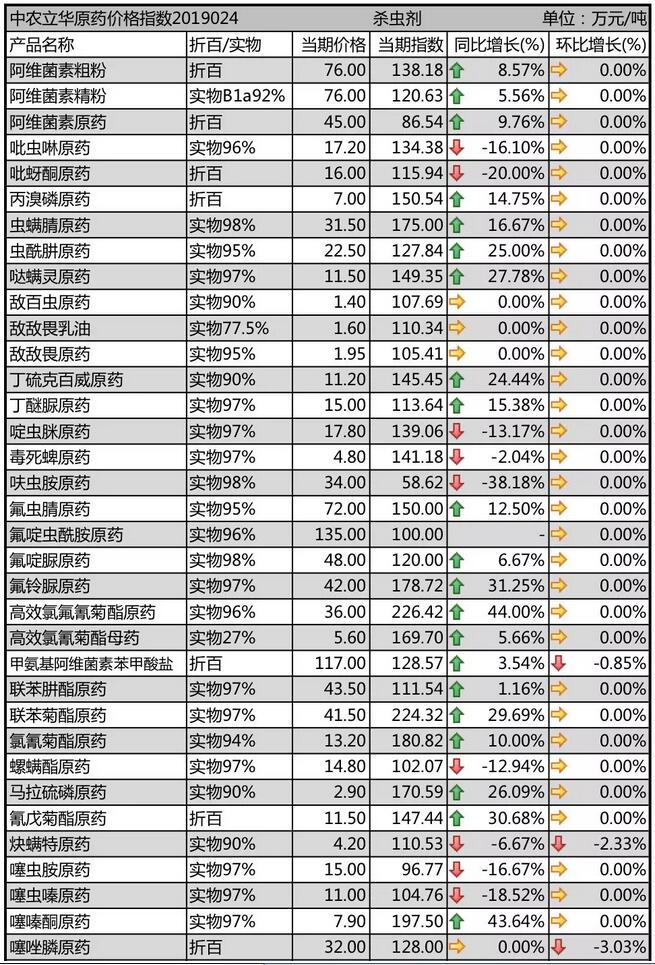 19年2月下旬國內(nèi)農(nóng)藥原藥殺蟲劑價格走勢