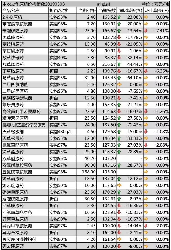 19年3月上旬國內農藥原藥除草劑價格走勢