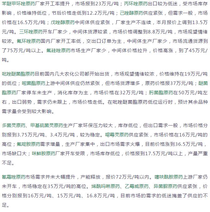 多款原藥貨源緊張價(jià)格提升