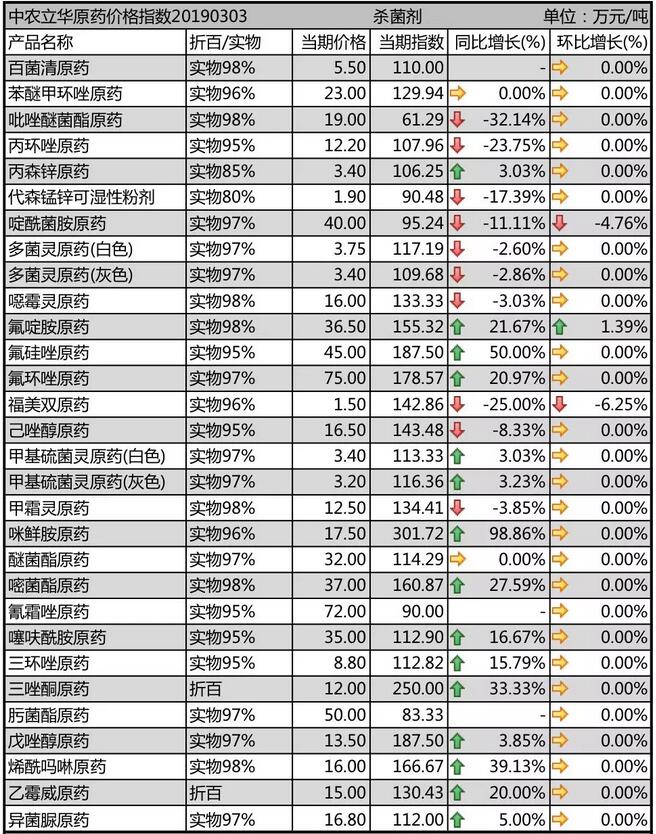 19年3月上旬國(guó)內(nèi)農(nóng)藥原藥殺菌劑價(jià)格走勢(shì)