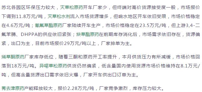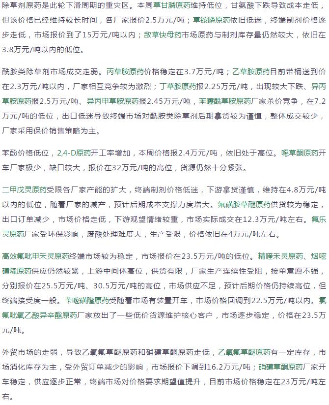 19年3月中旬國內(nèi)農(nóng)藥原藥除草劑價格走勢