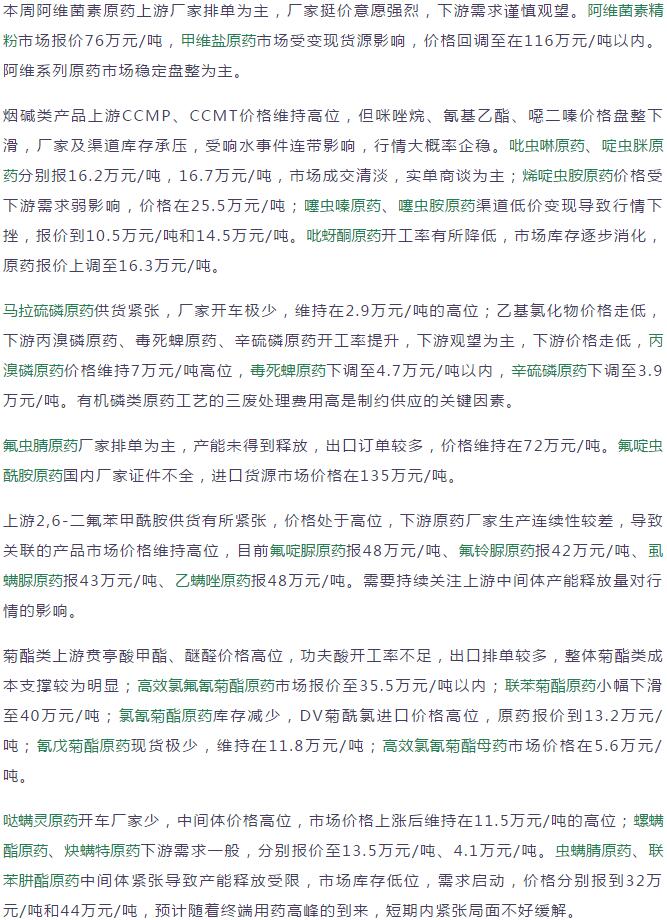多款原藥貨源緊張價(jià)格提升