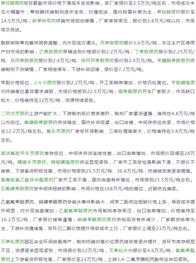 19年3月中旬國內(nèi)農(nóng)藥原藥除草劑價格走勢