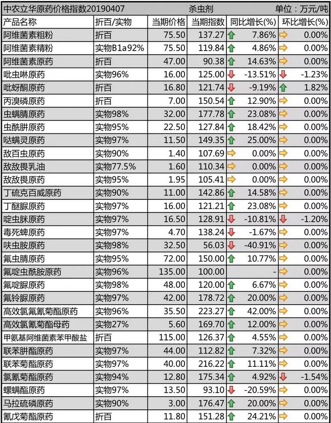 19年4月上旬國內(nèi)農(nóng)藥原藥殺蟲劑價格走勢