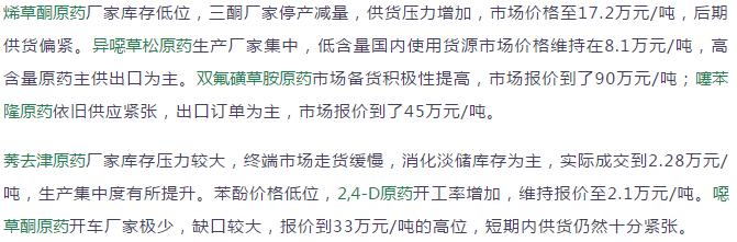 多款原藥貨源緊張價(jià)格提升