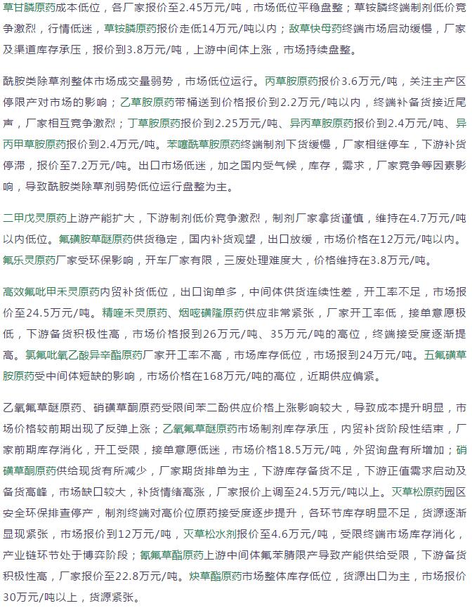 19年3月中旬國(guó)內(nèi)農(nóng)藥原藥除草劑價(jià)格走勢(shì)