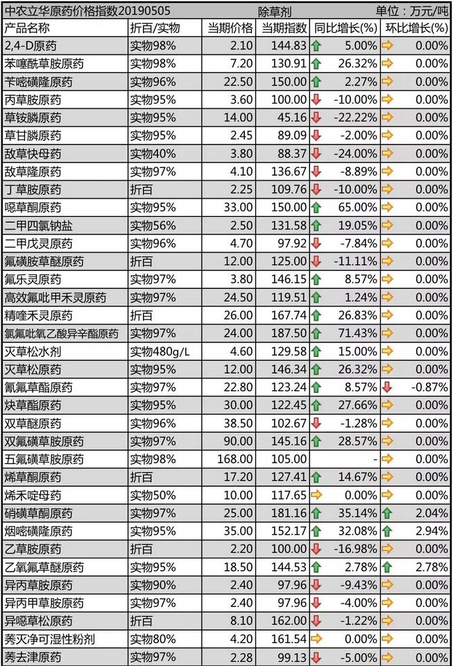 2019年5月初國(guó)內(nèi)農(nóng)藥原藥除草劑價(jià)格走勢(shì)