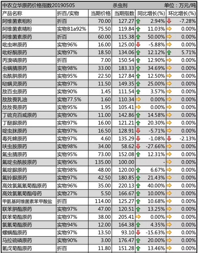2019年5月初國內(nèi)農(nóng)藥原藥殺蟲劑價格走勢