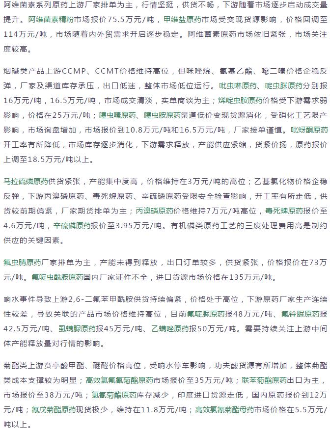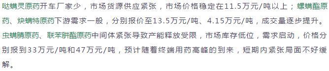 多款原藥貨源緊張價格提升