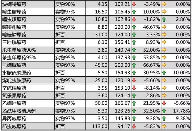 19年3月中旬國內(nèi)農(nóng)藥原藥殺蟲劑價格走勢
