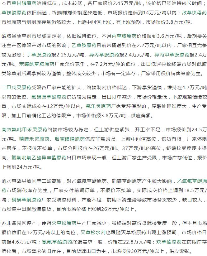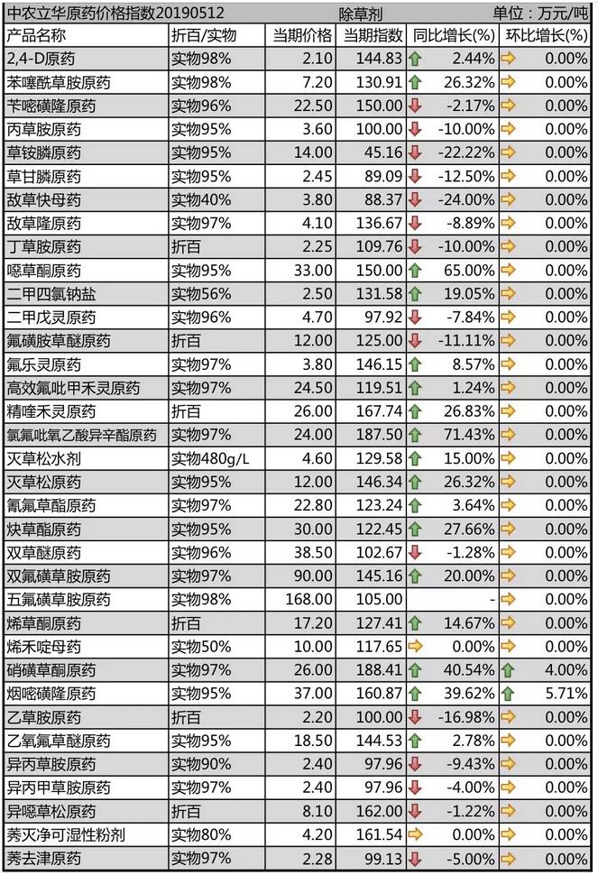 2019年5月中旬國(guó)內(nèi)農(nóng)藥原藥除草劑價(jià)格走勢(shì)