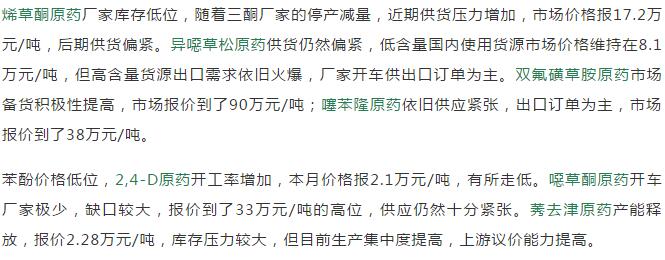 多款原藥貨源緊張價(jià)格提升