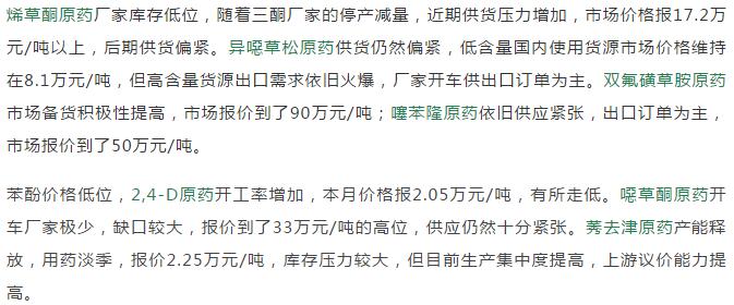 多款原藥貨源緊張價(jià)格提升
