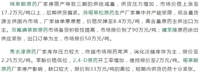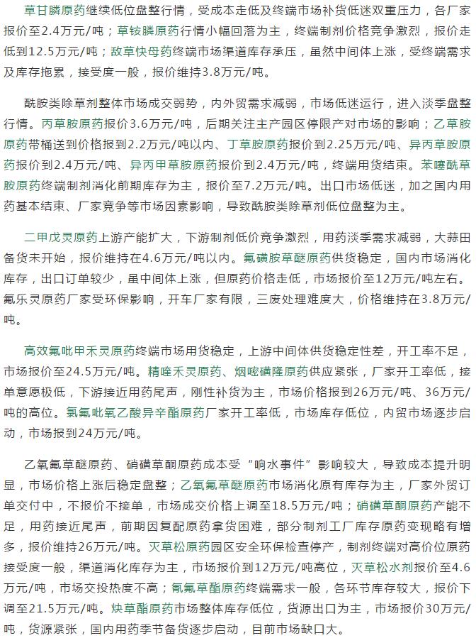 2019年5月中旬國內農(nóng)藥原藥除草劑價格走勢