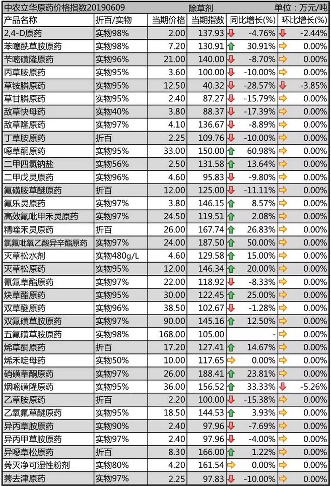 19年6月上旬國內農(nóng)藥原藥除草劑價格走勢