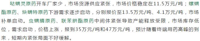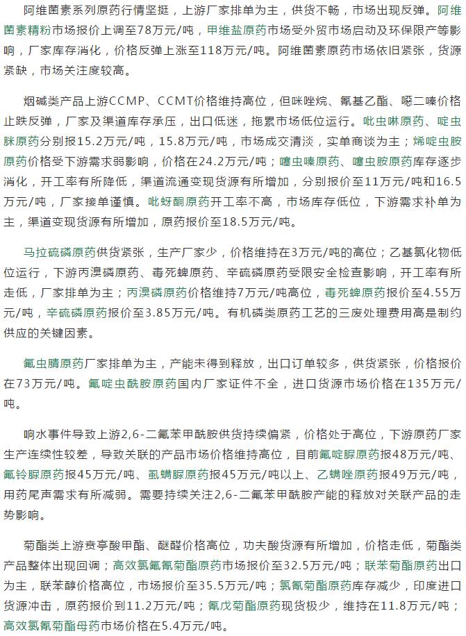 多款原藥貨源緊張價格提升