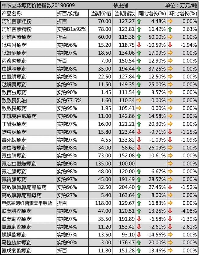 19年6月上旬國內(nèi)農(nóng)藥原藥殺蟲劑價格走勢