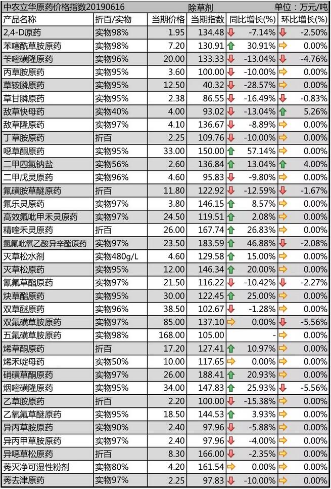19年6月中旬國內(nèi)農(nóng)藥原藥除草劑價格走勢
