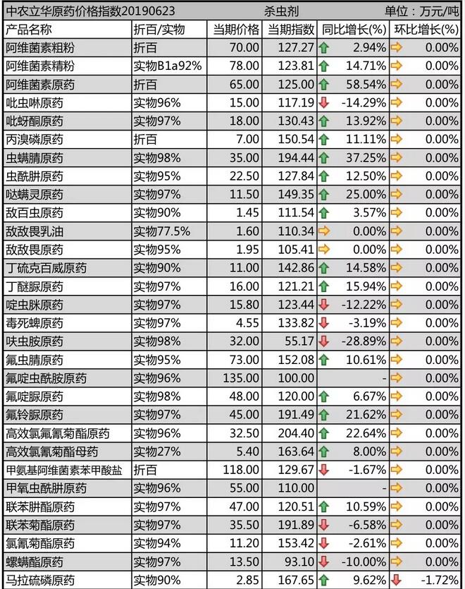 19年6月下旬國內(nèi)農(nóng)藥原藥殺蟲劑價(jià)格走勢