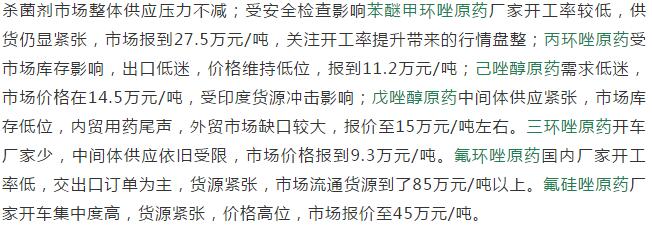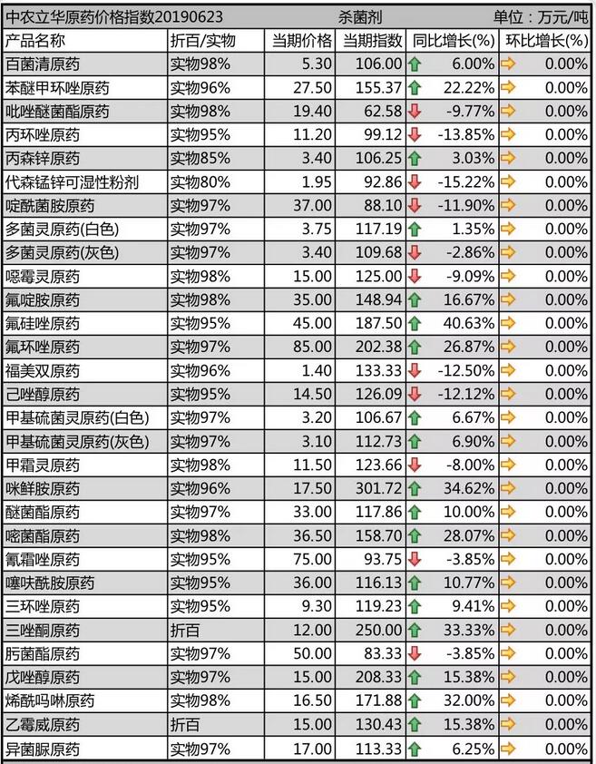 19年6月中旬國內(nèi)農(nóng)藥原藥殺菌劑價(jià)格走勢