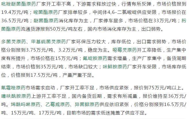 多款原藥貨源緊張價(jià)格提升