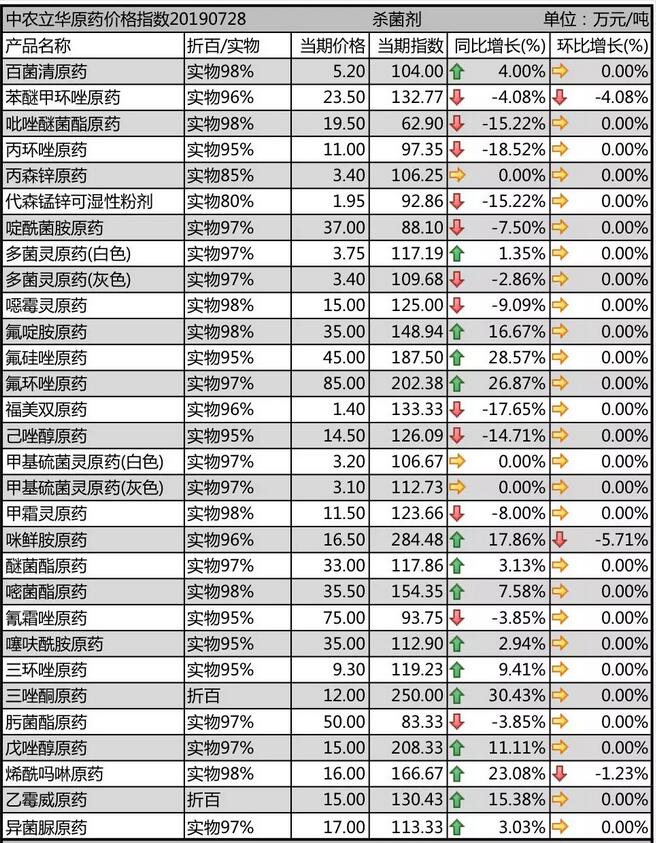 19年7月下旬國內(nèi)農(nóng)藥市場殺菌劑價格走勢