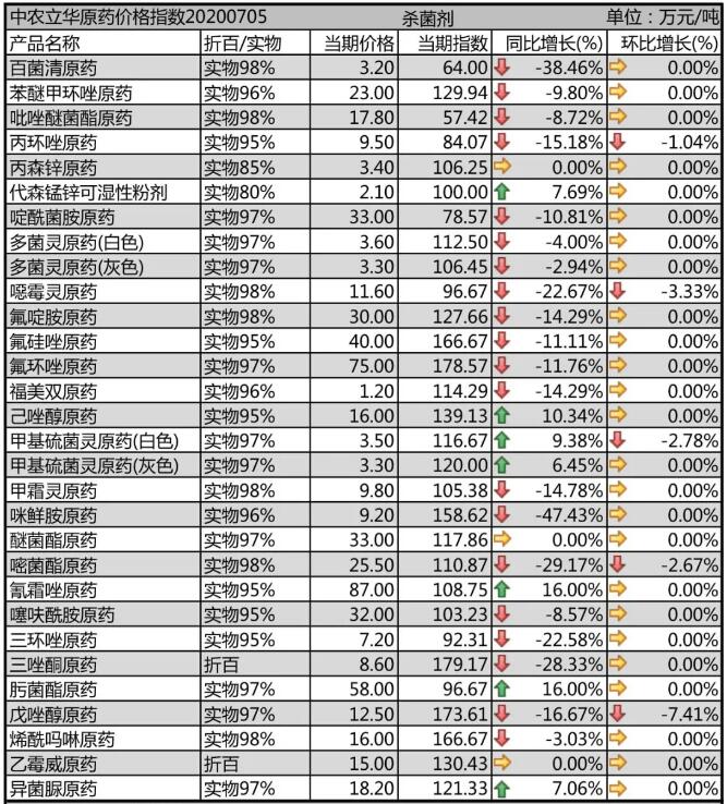 多菌靈原藥、甲基硫菌靈原藥生產(chǎn)廠家環(huán)保壓力較大,開工率一般,市場均報價3.6萬元/噸;噁霉靈原藥市場價格報到11.6萬元/噸,需求弱勢;氟啶胺原藥生產(chǎn)廠家集中,備貨季節(jié)到來,市場消化庫存為主,目前價格下滑到30萬元/噸;咪鮮胺原藥開工率提升,市場需求旺季已過,競爭加劇,市場價格殺跌報到9.2萬元/噸。