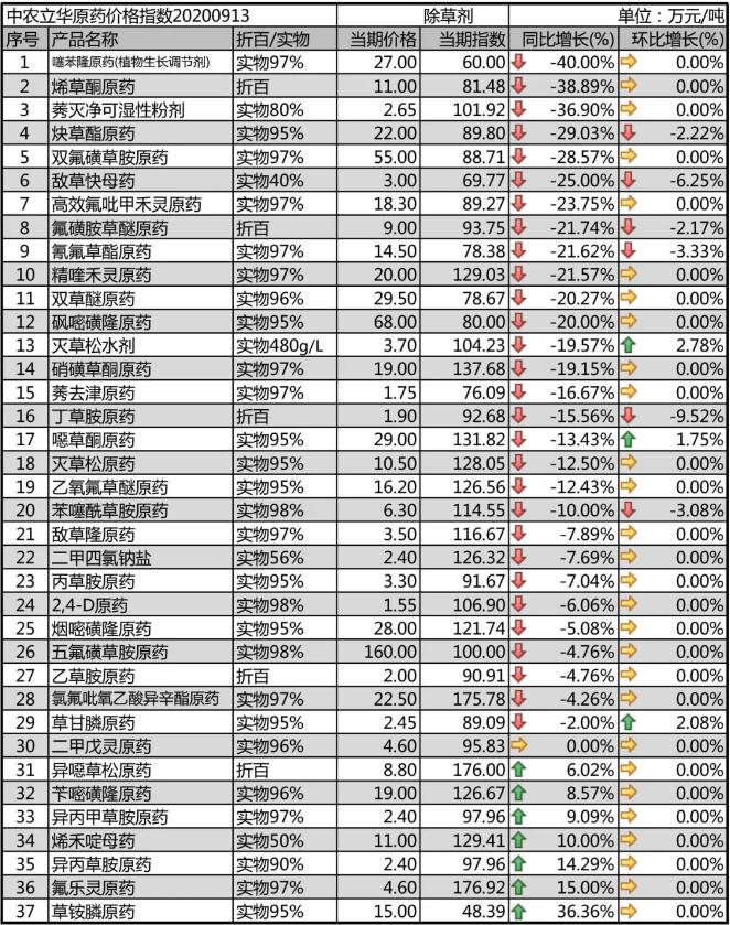 乙氧氟草醚原藥庫存相對低位,出口為主,市場成交價格在16.2萬元/噸左右;硝磺草酮原藥隨著上游供應的增加,原材料的走低,市場競爭加劇,目前市場報價19萬元/噸以內。