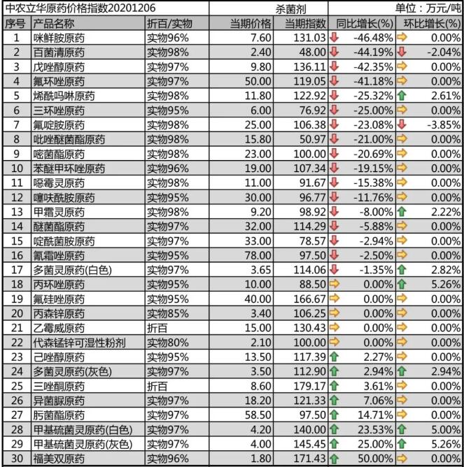 多菌靈原藥生產(chǎn)廠家環(huán)保壓力較大,開工率一般,市場報(bào)價3.65萬元/噸,但甲基硫菌靈原藥供應(yīng)緊張,幾無庫存,市場價格上漲到4.2萬元/噸以上;噁霉靈原藥市場報(bào)價11萬元/噸,較為穩(wěn)定;咪鮮胺原藥開工率提升,前期價格大幅下行,隨著需求啟動,目前市場庫存降低,市場價格穩(wěn)定在7.6萬元/噸。