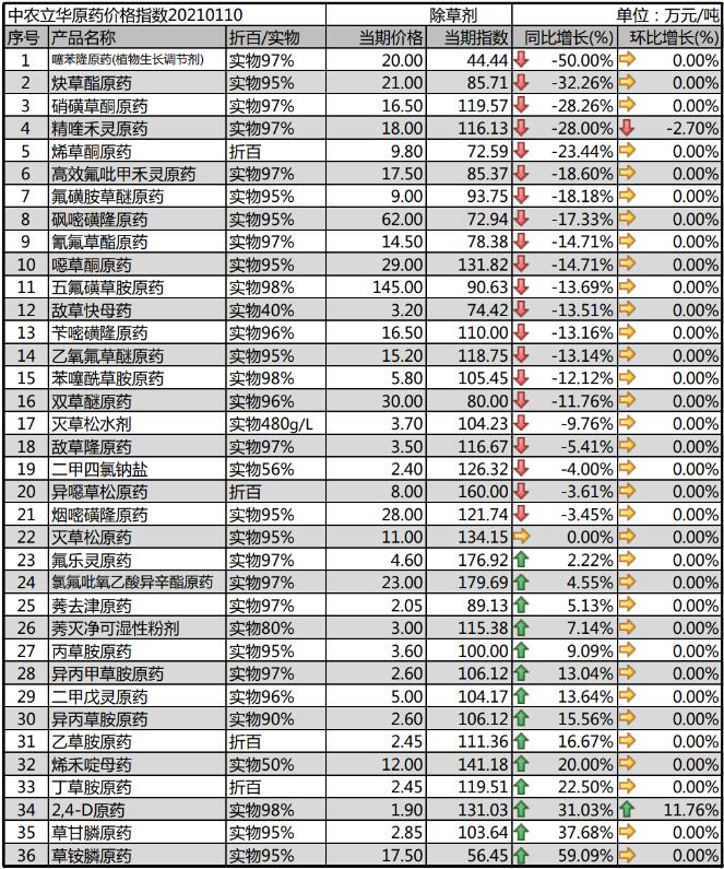 2,4-D原藥成本上行,廠家貨源緊俏,原藥價(jià)格上漲,報(bào)到1.9萬(wàn)元/噸。噁草酮原藥生產(chǎn)比較穩(wěn)定,報(bào)價(jià)在29萬(wàn)元/噸。莠去津原藥受限中間體問(wèn)題,原藥上漲,報(bào)至2.05萬(wàn)元/噸。