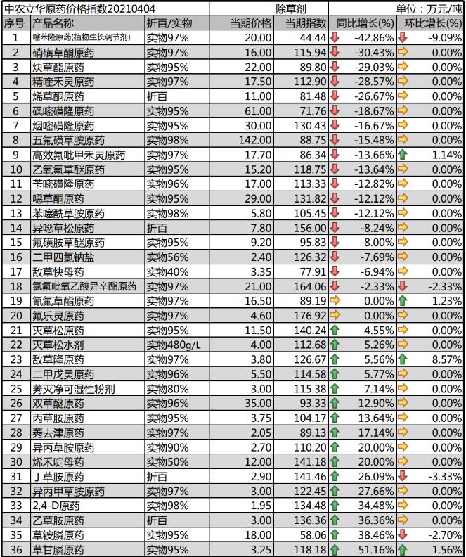 2,4-D原藥基礎(chǔ)原材料上漲,帶動了成本上行,各廠家謹(jǐn)慎報(bào)價(jià),價(jià)格報(bào)到1.95萬元/噸,排單為主。噁草酮原藥開工廠家增多,出口為主,報(bào)價(jià)穩(wěn)定在29萬元/噸,但供應(yīng)存在不穩(wěn)定性;莠去津原藥受原材料大幅上漲的影響,各廠家上調(diào)報(bào)價(jià)至2.05萬元/噸,供貨緊張。