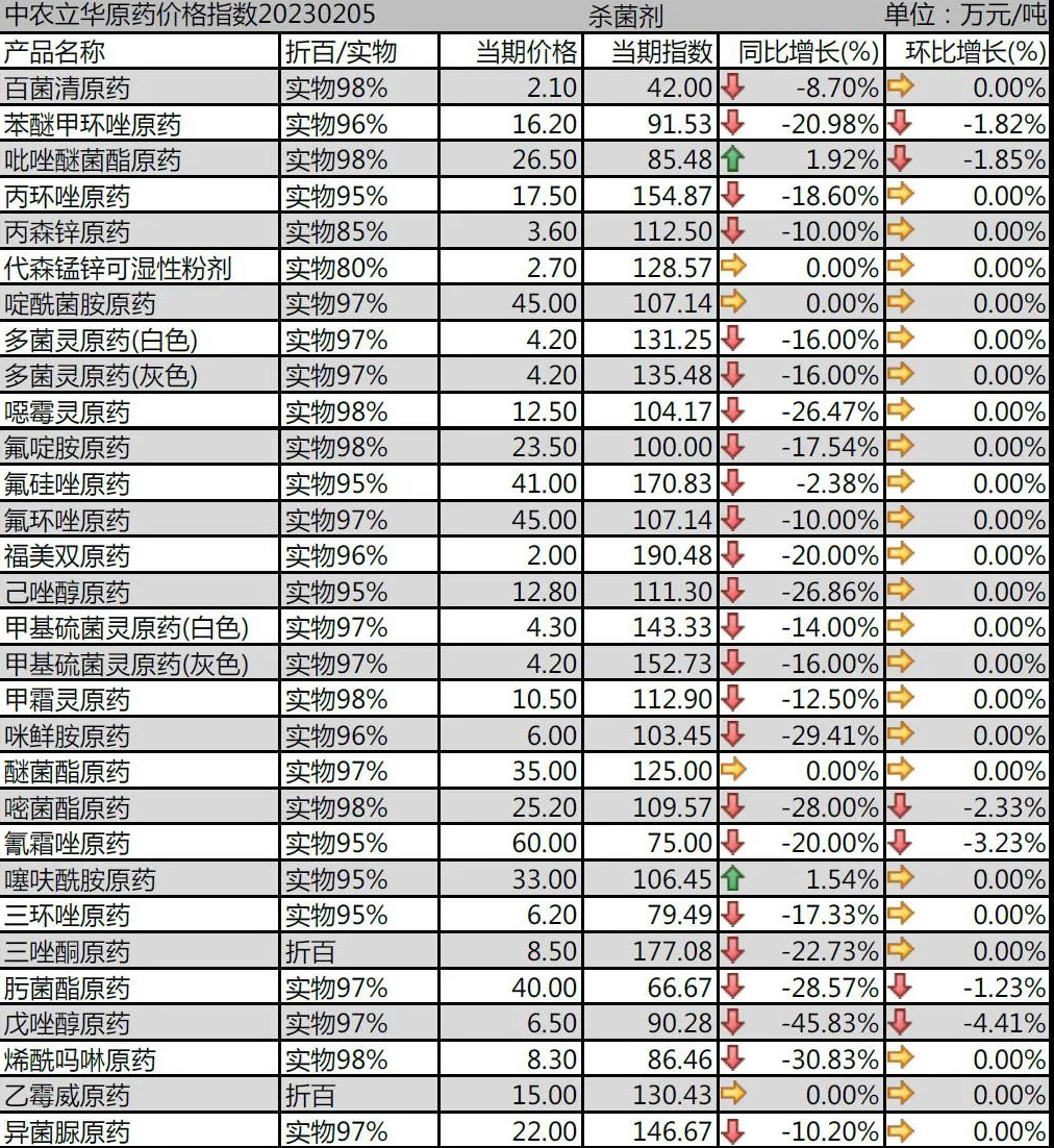 三唑類(lèi)產(chǎn)品需求弱勢(shì),價(jià)格處于低位,廠家競(jìng)爭(zhēng)激烈:苯醚甲環(huán)唑原藥報(bào)到16.2萬(wàn)元/噸;丙環(huán)唑原藥報(bào)到17.5萬(wàn)元/噸;己唑醇原藥價(jià)格報(bào)到12.8萬(wàn)元/噸;戊唑醇原藥廠家報(bào)到6.5萬(wàn)元/噸,小廠價(jià)格沖擊大;三環(huán)唑原藥價(jià)格報(bào)到6.2萬(wàn)元/噸;氟環(huán)唑原藥廠家排單較多,價(jià)格到45萬(wàn)元/噸。