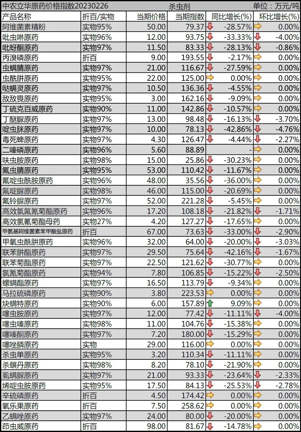 吡蚜酮原藥終端需求低迷,廠家競爭激烈,市場報到11.5萬元/噸;氟啶蟲酰胺原藥終端備貨中,價格盤整,終端性價比逐步提高,報到48萬元/噸。
